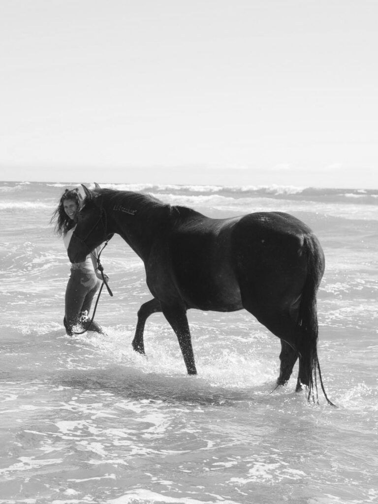 A miss & a sauvage. I have shiny eyes, a big smile and a heart as sensitive as strong. I come from a beautifully loving big family, born and raised in Barcelona like a proper lady. I choose to live *senzy style*: in the countryside, laughing loud, dancing barefoot, making fire and rolling in the mud… free to be myself. And horses lend me the wings I lack, to go away and to come back.